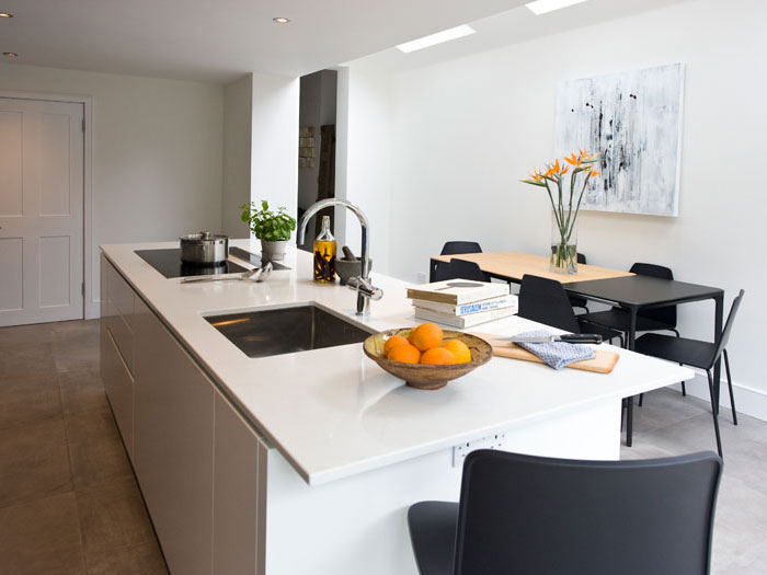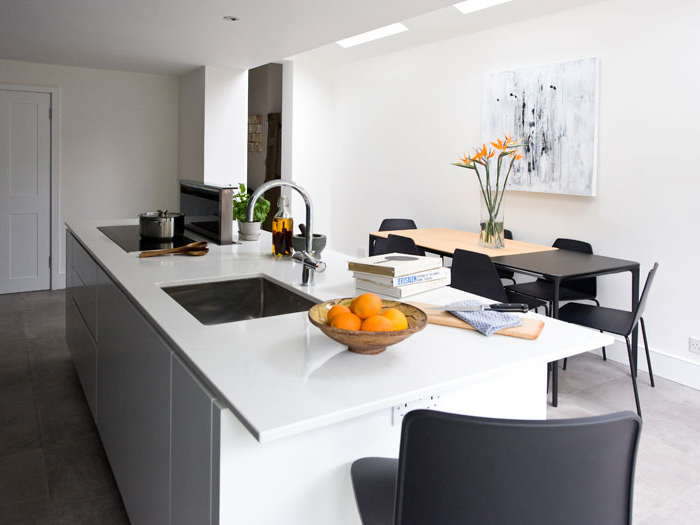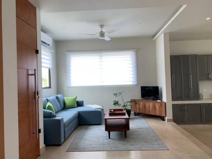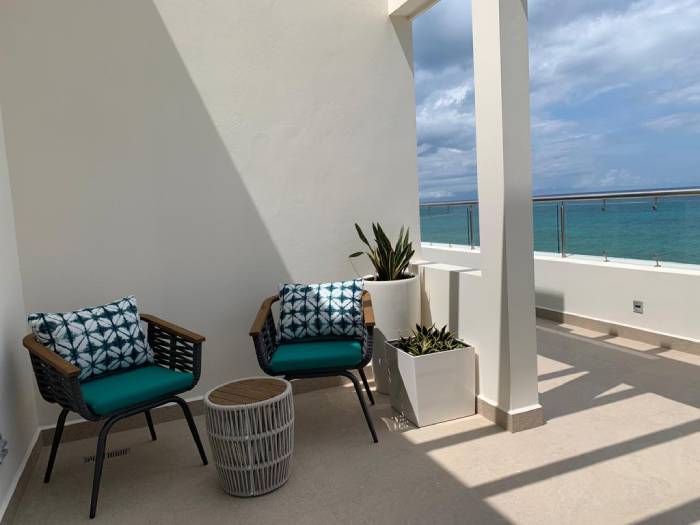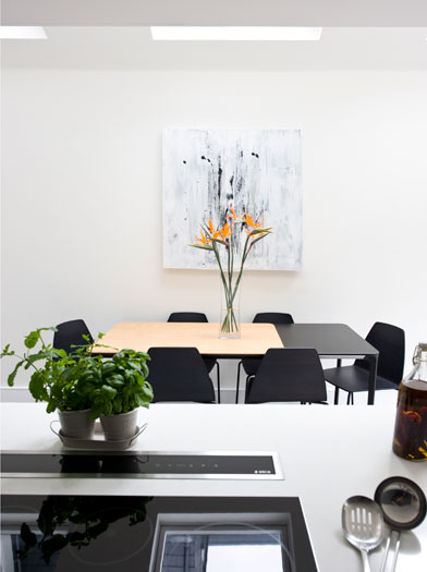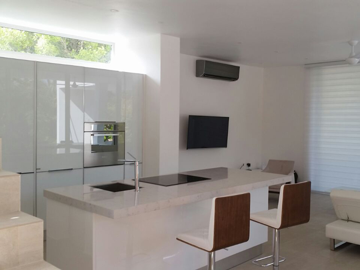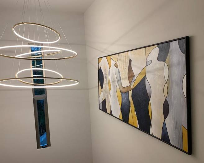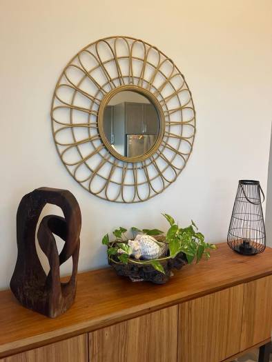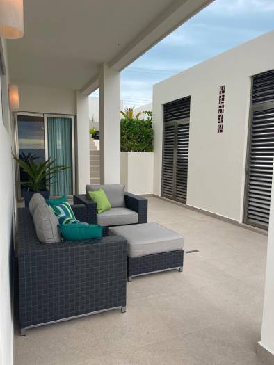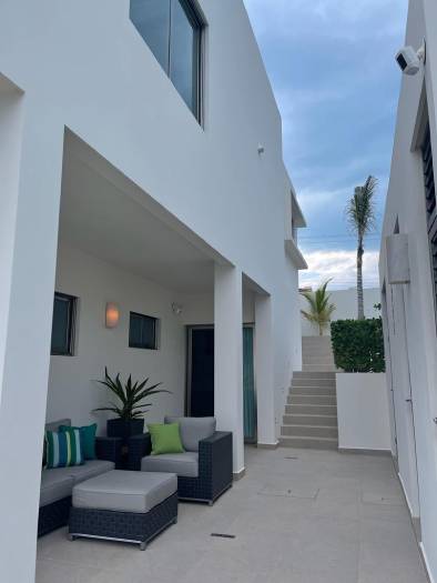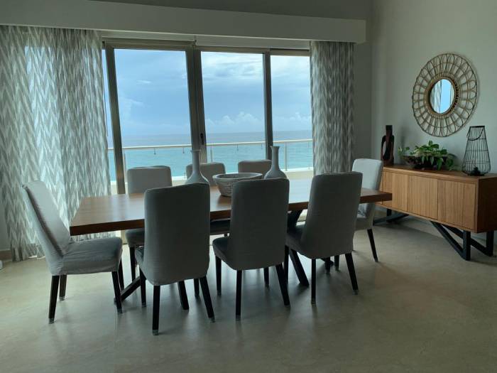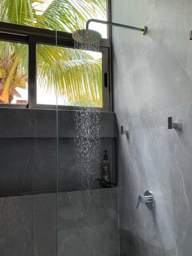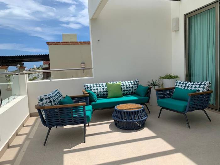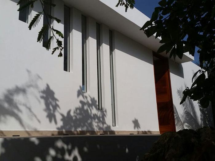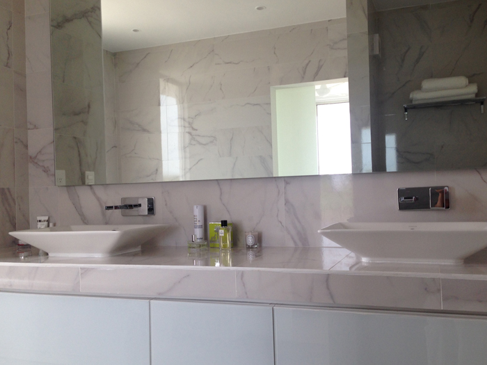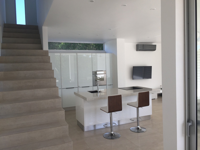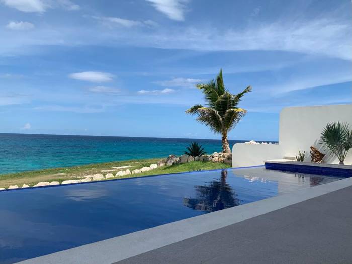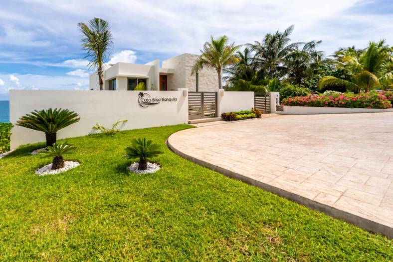 Italian porcelain tiles are used throughout the house, in the natural colours of Balsatina Beige Crema, Bianco, Bone and Stone, creating a cool neutral base. This is complemented by the local Tzalam wood in a bespoke cabinet and various tables and consuls, bringing texture and warmth into the house, enhanced by the softness of linens from the Romo Okari Collection, and local woven rugs. Various artworks from local Mexican artist Alejandro Sabugal adorn the walls adding splashes of colour and vibrancy, in addition to the fabrics of Aztec greens and Midori blues that work in harmony with the ever changing colours of the sea and sky